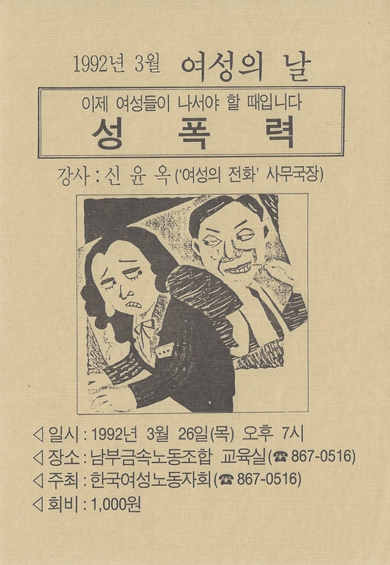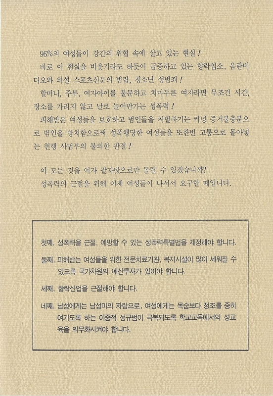 [초대장[] 1992년 3월 26일 여성의날 '이제 여성들이 나서야 할 때입니다. 성 폭 력