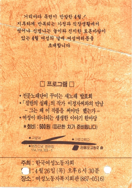 [초대장] 1990년 4월 26일 여성의날_'절반의 실패의 작가 이경자씨와의 만남'
