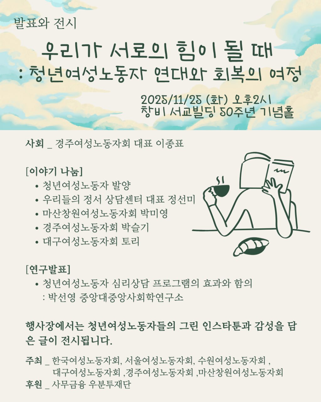 [발표회 공지] 우리가 서로의 힘이 될 때 : 청년여성노동자 연대와 회복의 여정