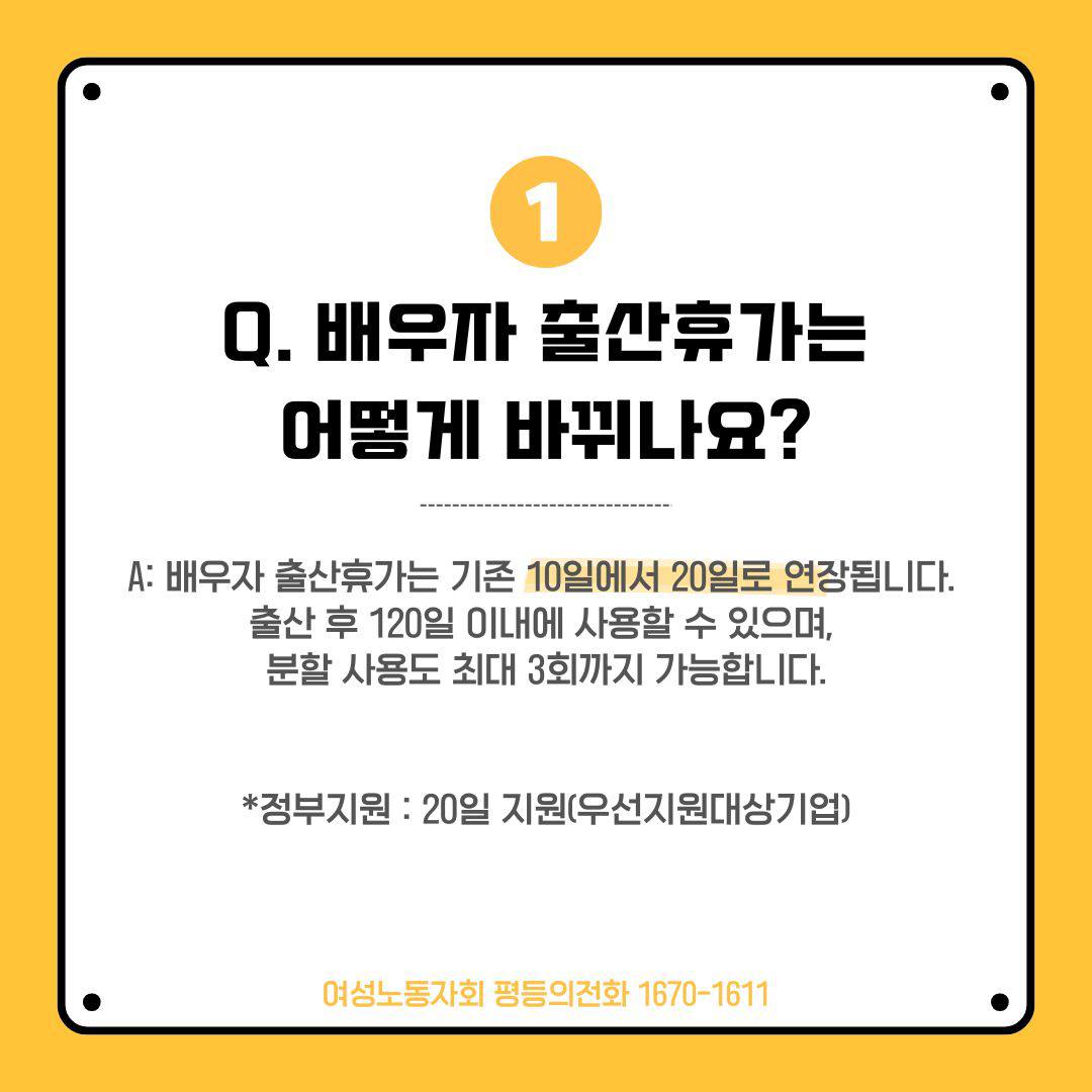 [평등의전화 카드뉴스] 2025년 바뀐 모성보호제도 알아보자! 1670-1611